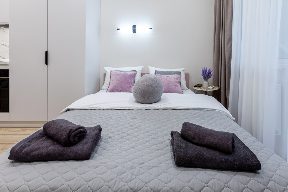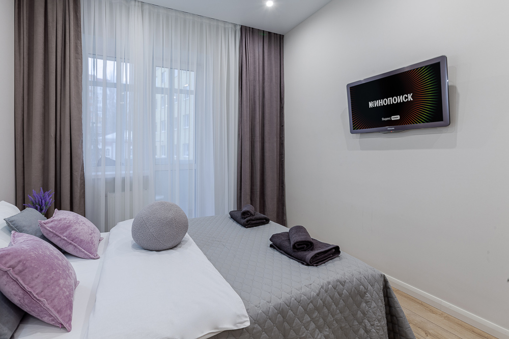 Каждая квартира оснащена двуспальными кроватями с ортопедическим матрасом