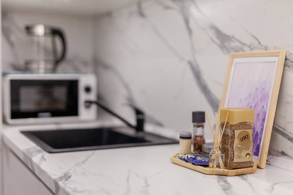 Чай, Кофе, Сахар, Соль, Перец - в каждых апартаментах